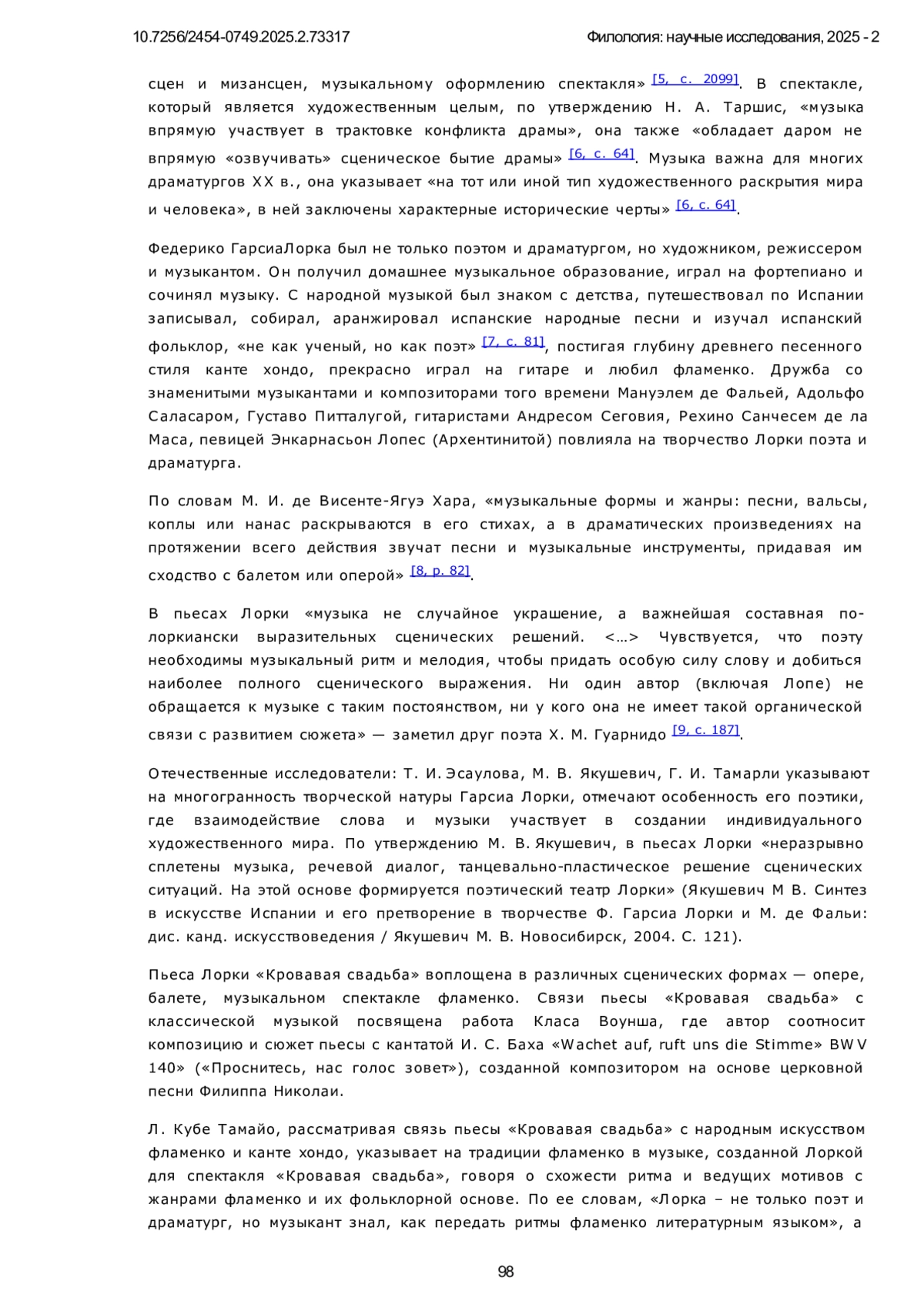 10. Kube Tamayo L. Tradición y flamenco: la música ideada por Lorca para “Bodas de Sangre” // La nueva alboreá. Revista de la Junta de Andalucía. 2018. Pp. 44-51.