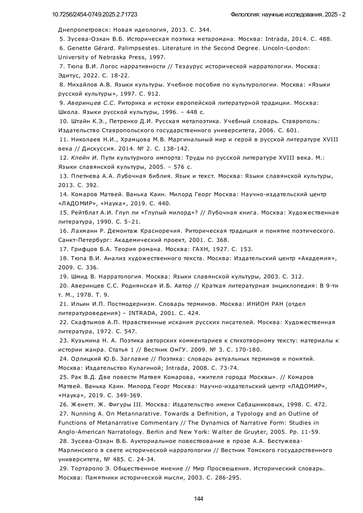 5. Зусева-Озкан В.Б. Историческая поэтика метаромана. Москва: Intrada, 2014. С. 488.