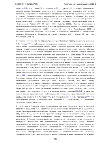 20. Генералова Н.П. Религиозная жизнь как фактор сохранения национальной идентичности и родного языка первых Поволжских немцев-колонистов // Science Time. 2014. № 9. C. 67-71.