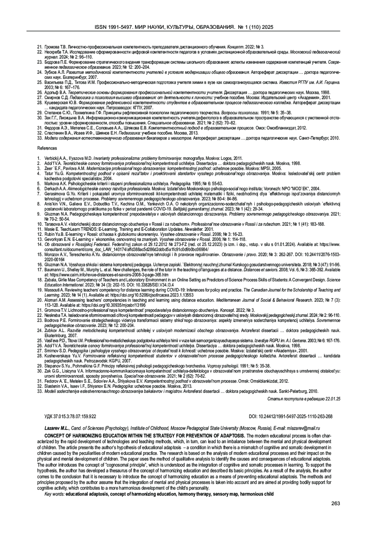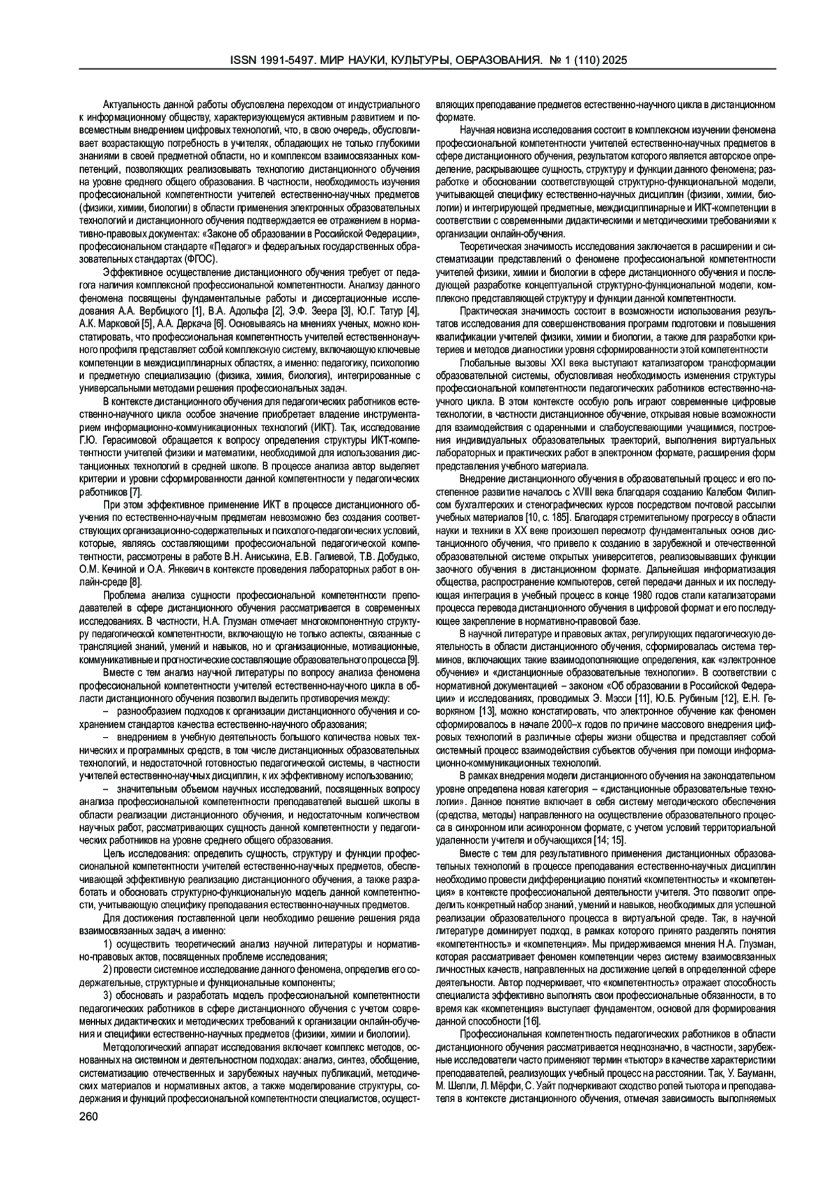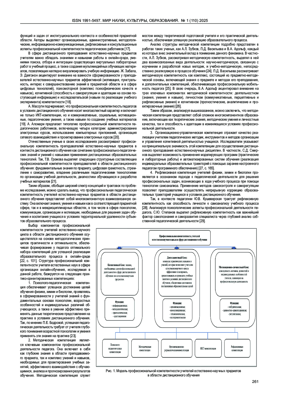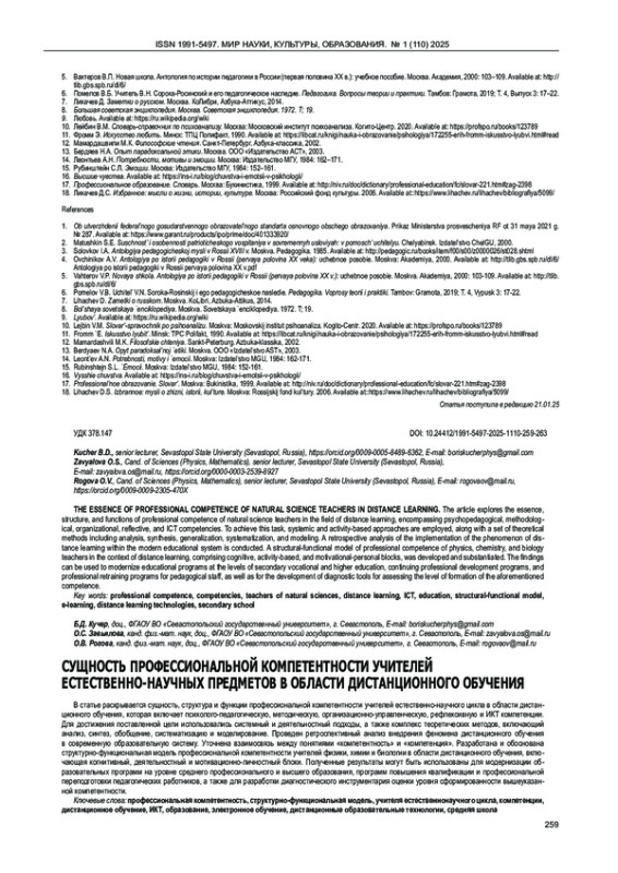 КУЧЕР Б. Д., ЗАВЬЯЛОВА О. С., РОГОВА О. В. СУЩНОСТЬ ПРОФЕССИОНАЛЬНОЙ КОМПЕТЕНТНОСТИ УЧИТЕЛЕЙ ЕСТЕСТВЕННОНАУЧНЫХ ПРЕДМЕТОВ В ОБЛАСТИ ДИСТАНЦИОННОГО ОБУЧЕНИЯ // МИР НАУКИ, КУЛЬТУРЫ, ОБРАЗОВАНИЯ. 2025. № 1 (110)