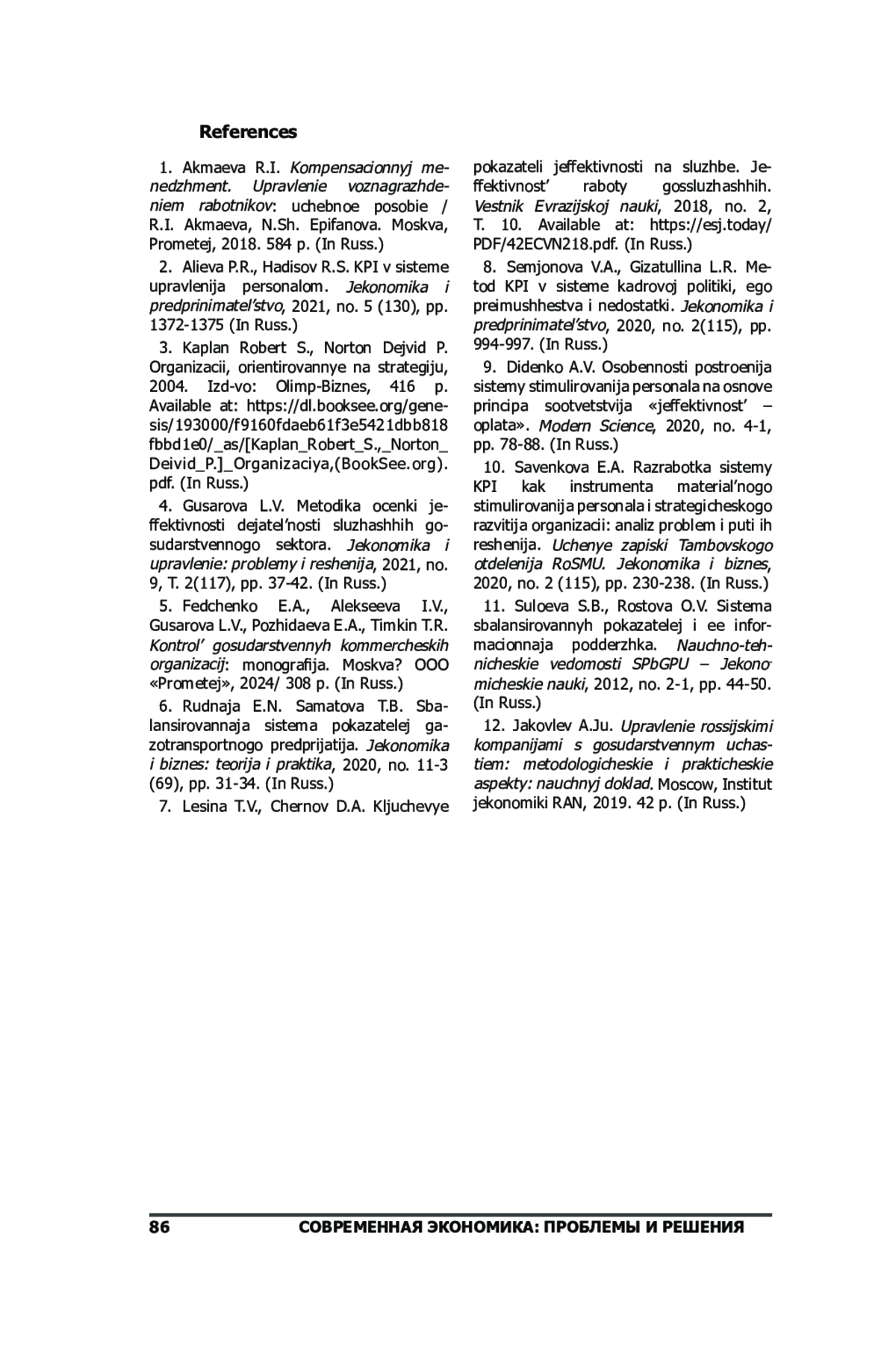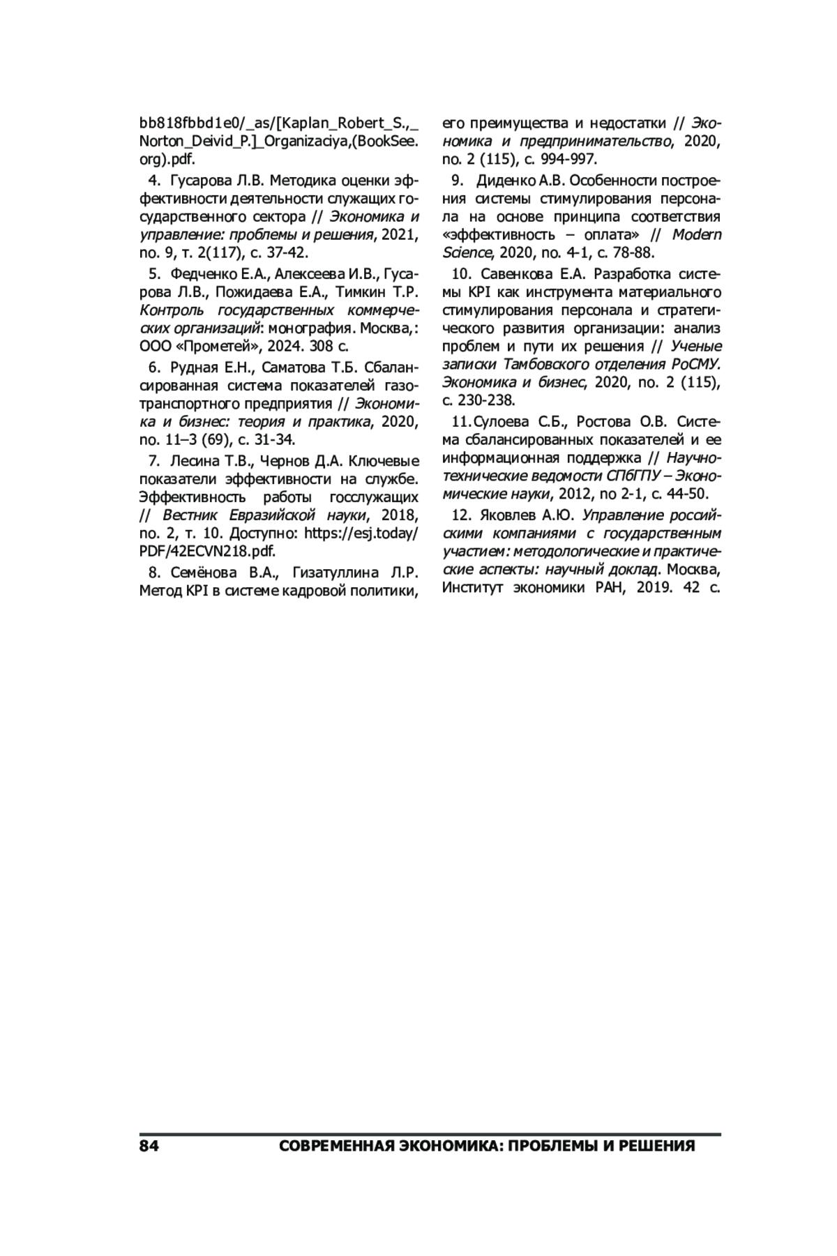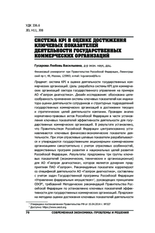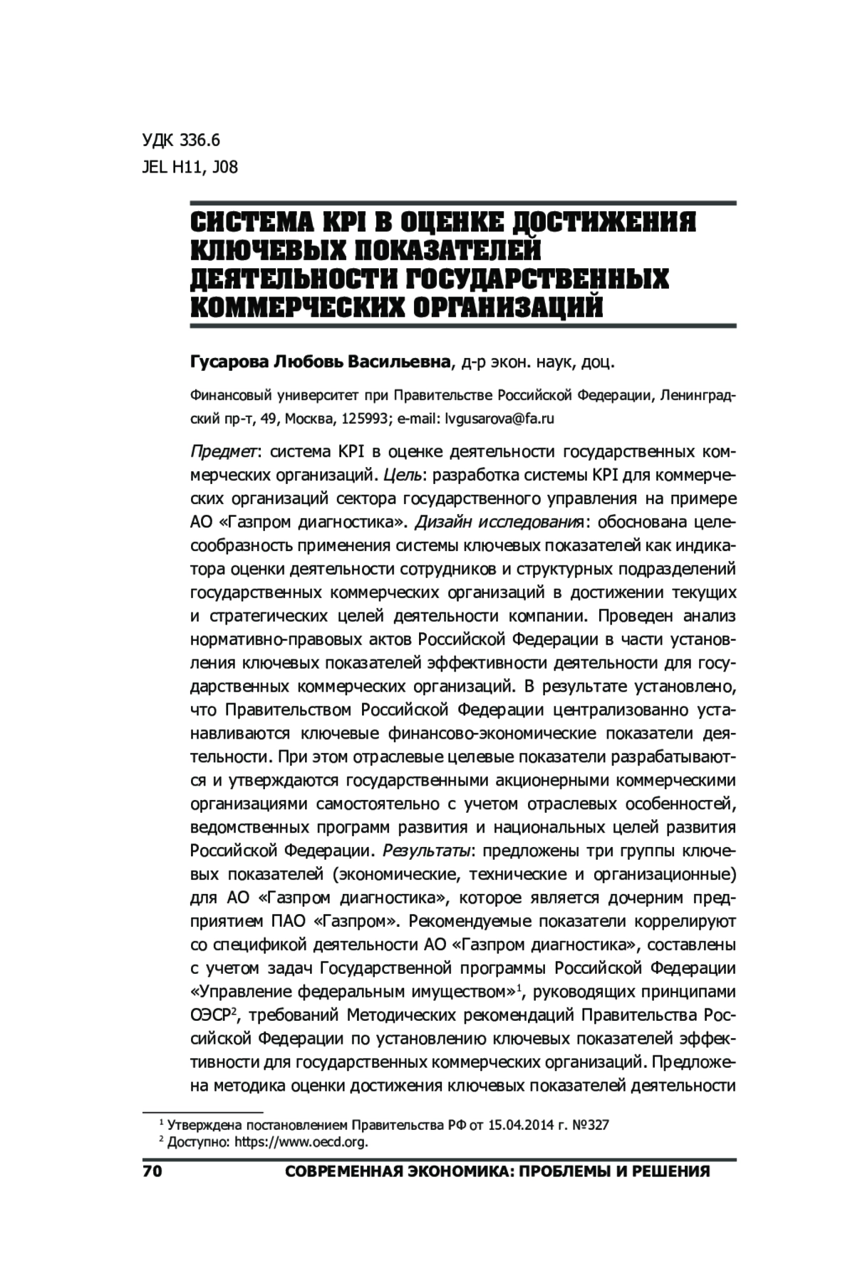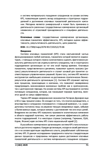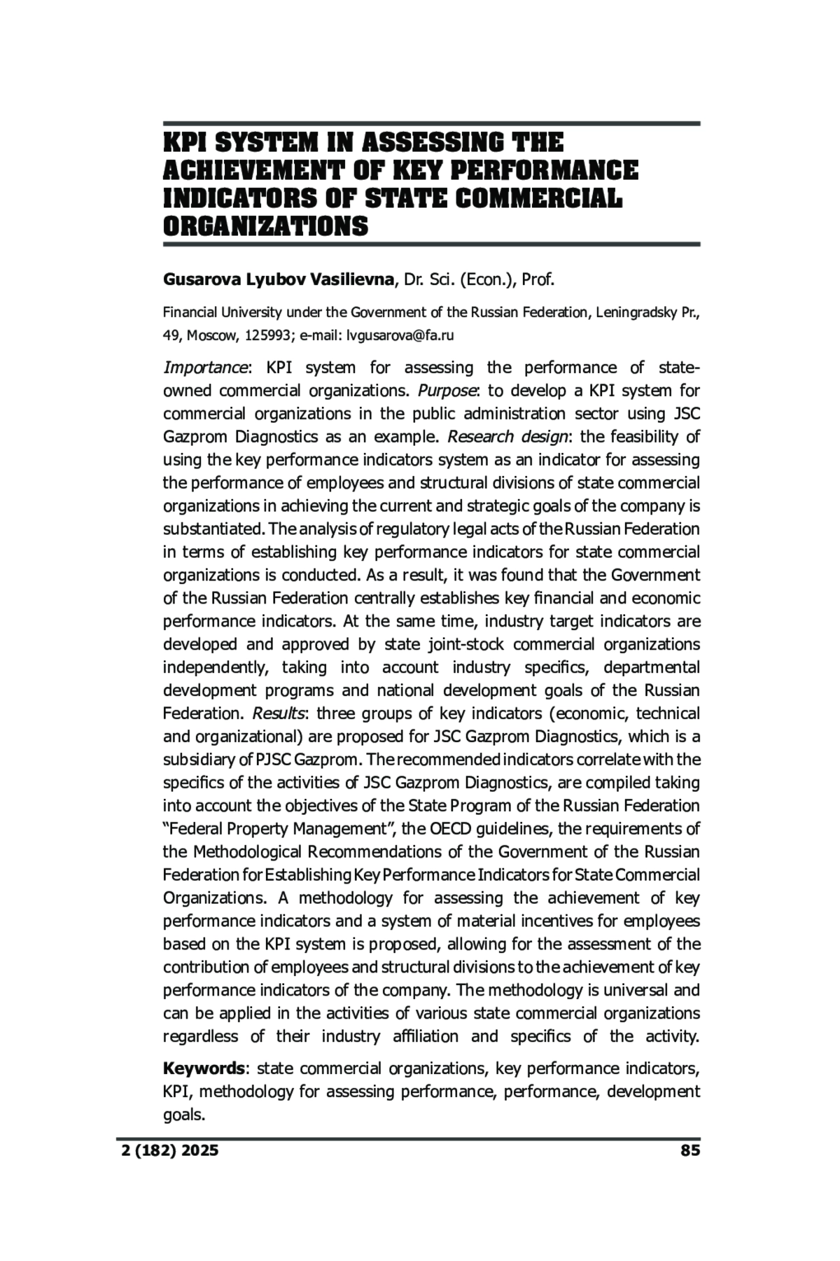 Статья: СИСТЕМА KPI В ОЦЕНКЕ ДОСТИЖЕНИЯ КЛЮЧЕВЫХ ПОКАЗАТЕЛЕЙ ДЕЯТЕЛЬНОСТИ ГОСУДАРСТВЕННЫХ КОММЕРЧЕСКИХ ОРГАНИЗАЦИЙ (2025)