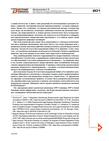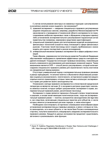 11. Damir R. Salikhov «Regulatory Sandboxes» in Russia: New Horizons and Challenges // URL: https://doi.org/10.38044/2686-9136-2020-1-2-17-27.