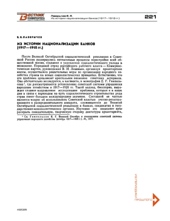 Для цитирования: Лаверычев В. Я. Из истории национализации банков (1917—1918 гг.). Вестник Университета имени О. Е. Кутафина (МГЮА). 2025;1(4):221-235.