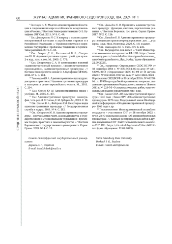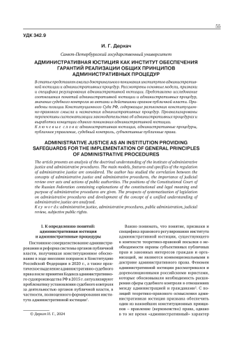 ДЕРКАЧ И. Г. АДМИНИСТРАТИВНАЯ ЮСТИЦИЯ КАК ИНСТИТУТ ОБЕСПЕЧЕНИЯ ГАРАНТИЙ РЕАЛИЗАЦИИ ОБЩИХ ПРИНЦИПОВ АДМИНИСТРАТИВНЫХ ПРОЦЕДУР // ЖУРНАЛ АДМИНИСТРАТИВНОГО СУДОПРОИЗВОДСТВА. 2024. № 1