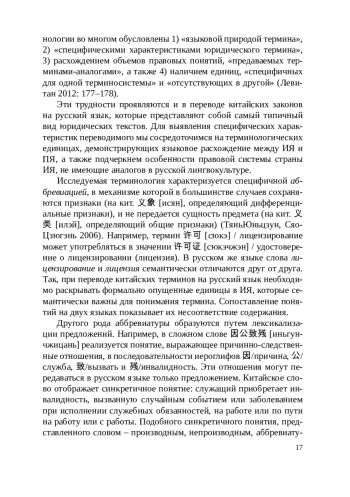 Работа посвящена изучению особенностей перевода правовой лексики с китайского языка на русский язык. Цель исследования - сопоставить семантические особенностей терминологических единиц на китайском и русском языках, выяснить факторы, обусловливающие неэквивалентность понятий в китайской и русской правовых системах, показать прагматическую эффективность формально-семантических преобразований как способа достижения адекватности перевода. Материал исследования - термины, отобранные приемом сплошной выборки из текстов административных законов КНР и их официальные переводческие варианты. Результаты сопоставления юридической лексики в разных лингвокультурах показывают, что неэквивалентность понятий обусловливается типологической спецификой языков, несоответствием содержания юридических понятий, функционирующих в соотносимых областях права и обнаруживающих культурно специфичные компоненты.