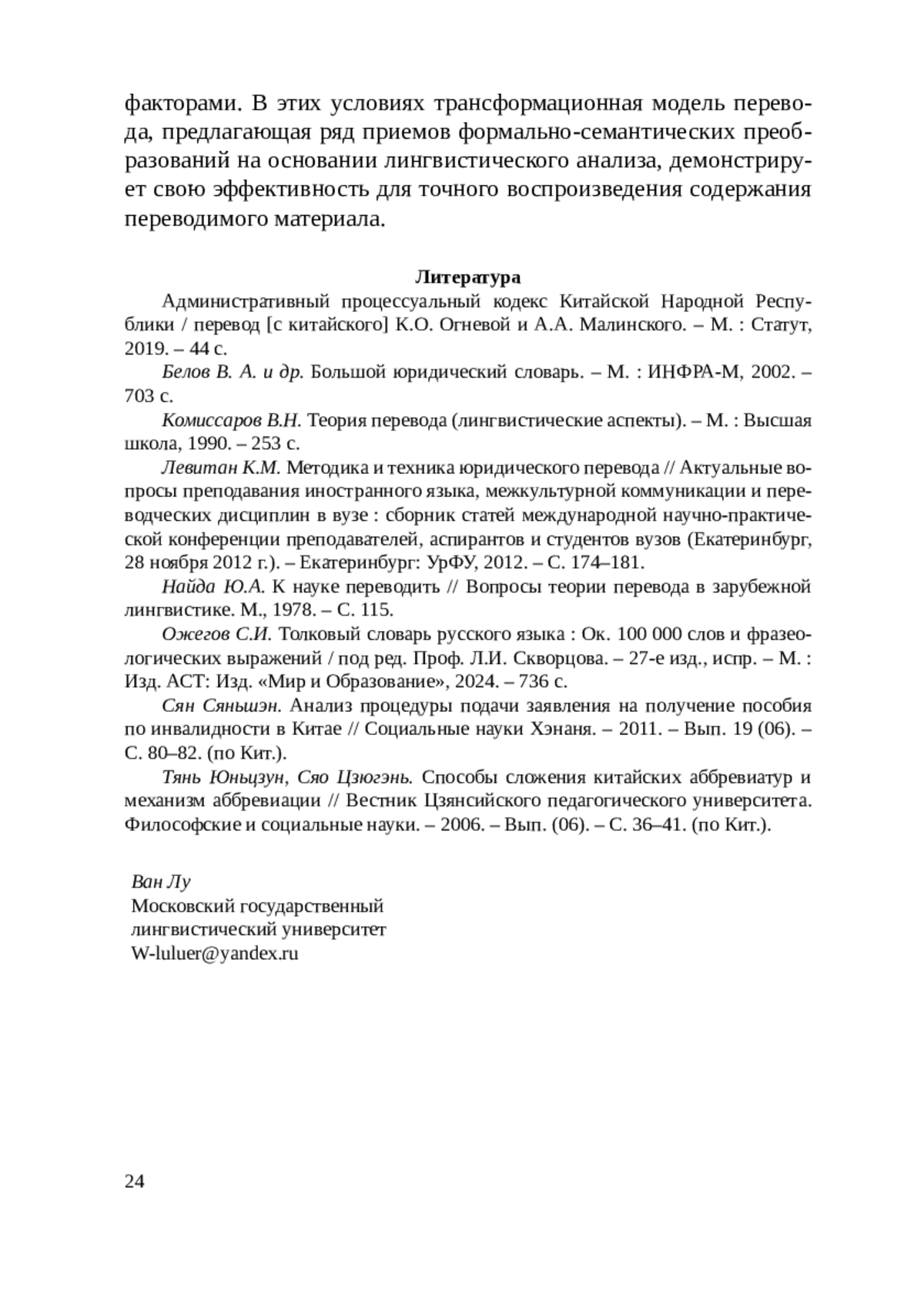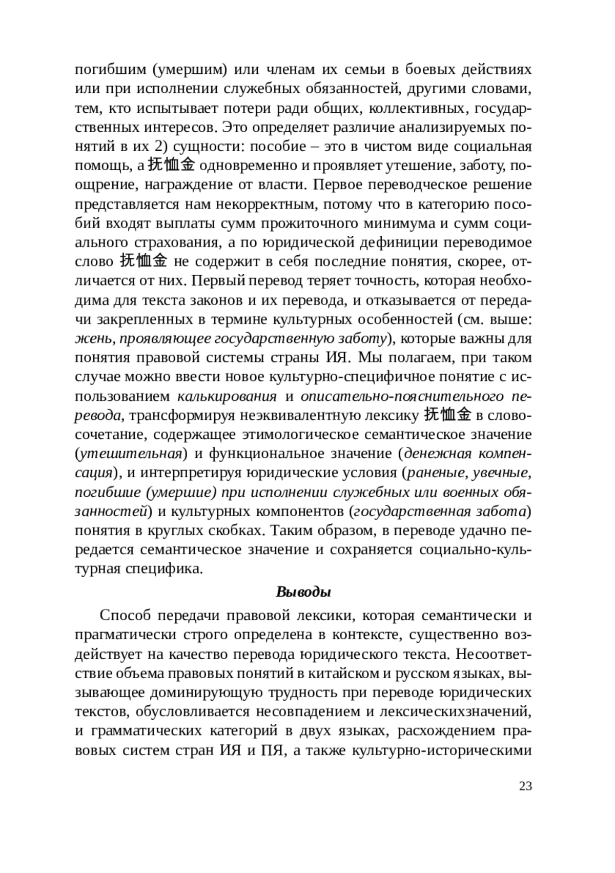 ВАН Л. КУЛЬТУРНАЯ СПЕЦИФИКА ЮРИДИЧЕСКОЙ ЛЕКСИКИ И ЕЕ ПЕРЕДАЧА В ПЕРЕВОДЕ В ЯЗЫКОВОЙ ПАРЕ «КИТАЙСКИЙ-РУССКИЙ» // ЯЗЫК, КОММУНИКАЦИЯ И СОЦИАЛЬНАЯ СРЕДА. 2025. № 23