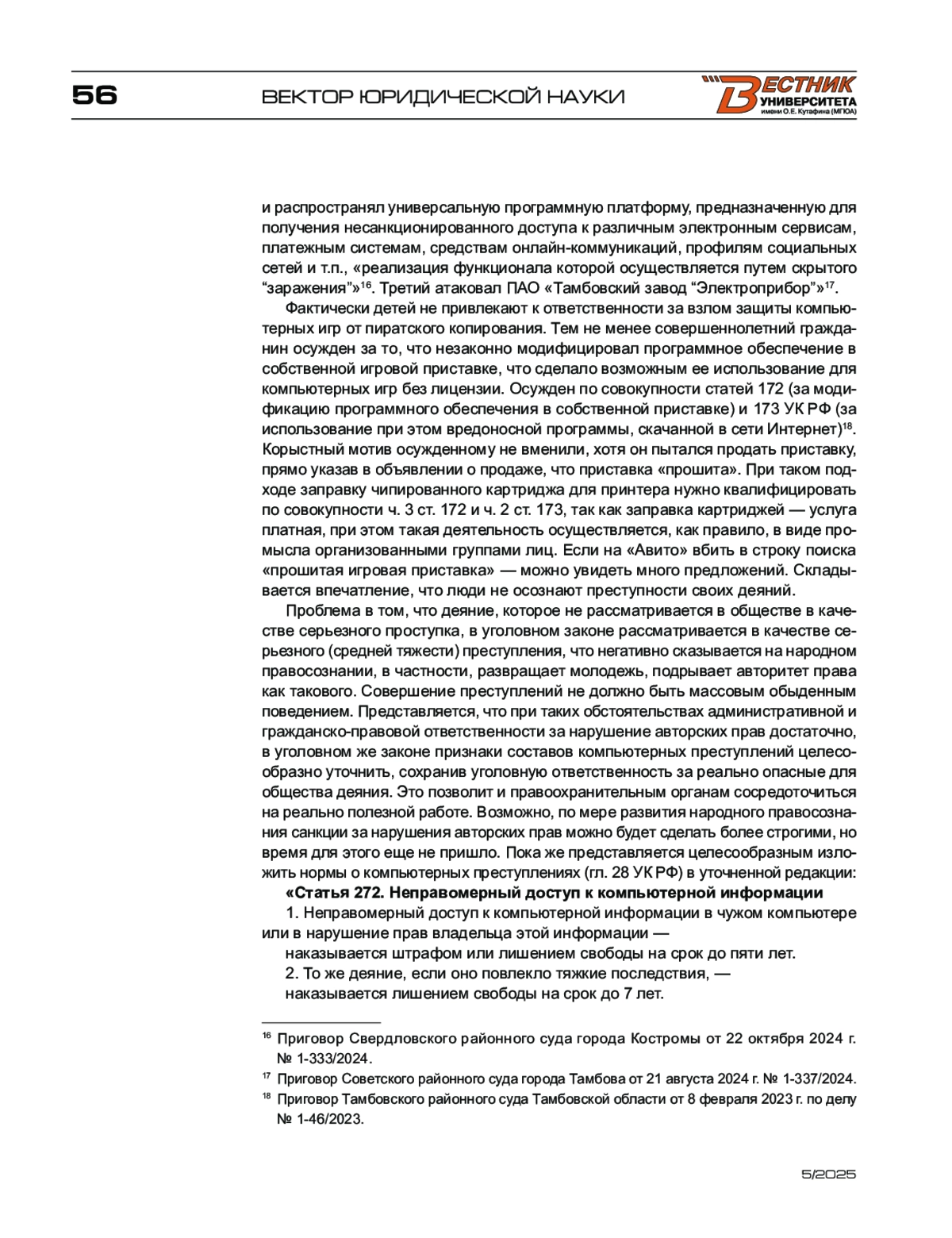 Для цитирования: Эстрин А. К вопросу о принципах построения системы уголовной репрессии1 в пролетарском государстве (Извлечение. Вестник Университета имени О. Е. Кутафина (МГЮА). 2025;(5):254-259.