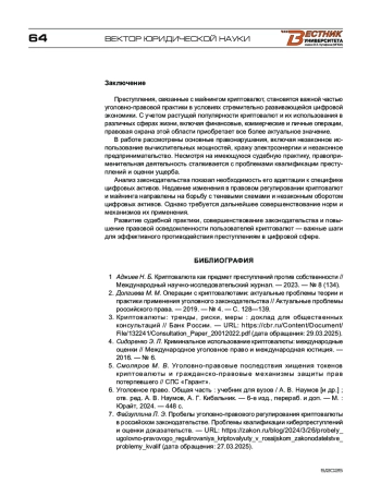 1. Аджиев Н. Б. Криптовалюта как предмет преступлений против собственности // Международный научно-исследовательский журнал. - 2023. - № 8 (134).