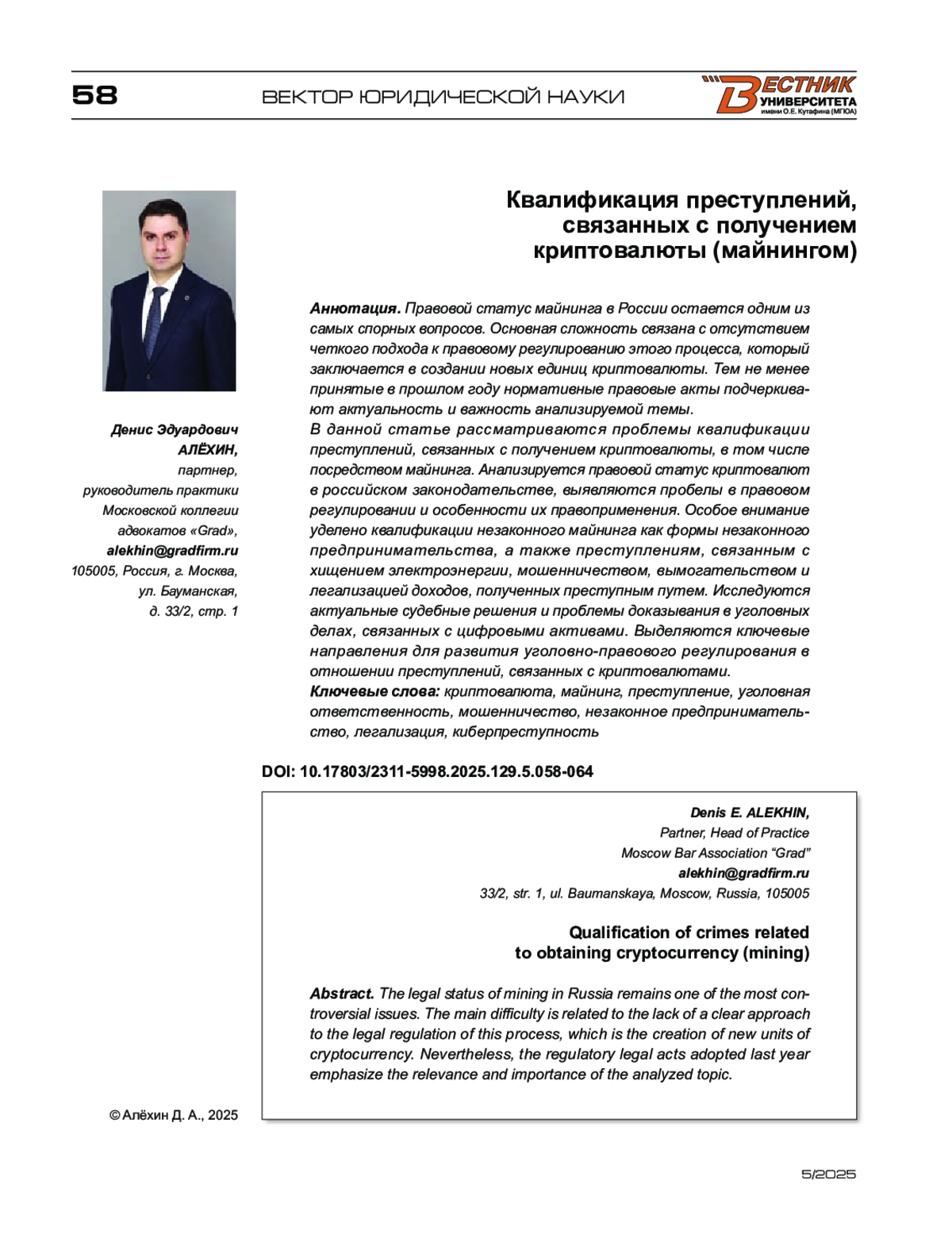 - 10.17803/2311-5998.2025.129.5.058-064