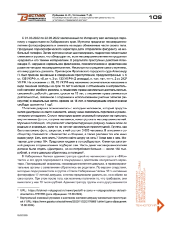 3. Виртуальный знакомый угрозами и шантажом заставил девушку заниматься проституцией // URL:https://www.gazeta.ru/social/news/2023/11/22/21766051.shtml (дата обращения: 15.08.2024).