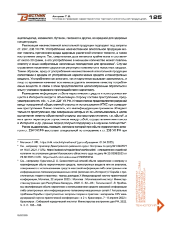 5. Куричков Д. О. Бесконтактный способ сбыта наркотиков: к вопросу о квалификации сбыта наркотических средств, психотропных веществ или их аналогов, совершенного с использованием средств массовой информации либо электронных или информационно-телекоммуникационных сетей (включая сеть Интернет) // Борьба с преступностью: теория и практика: тезисы докладов Х Международной научно-практической конференции. Могилев, 22 апреля 2022 г. - Могилев: Могилевский институт Министерства внутренних дел Республики Беларусь, 2022. - С. 82-86.