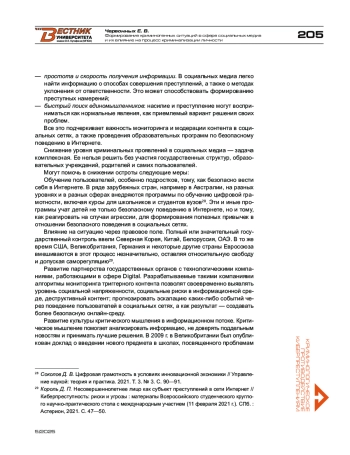 9. Король Д. П. Несовершеннолетнее лицо как субъект преступлений в сети Интернет // Киберпреступность: риски и угрозы: материалы Всероссийского студенческого круглого научно-практического стола с международным участием (11 февраля 2021 г.). - СПб.: Астерион, 2021. - С. 47-50.