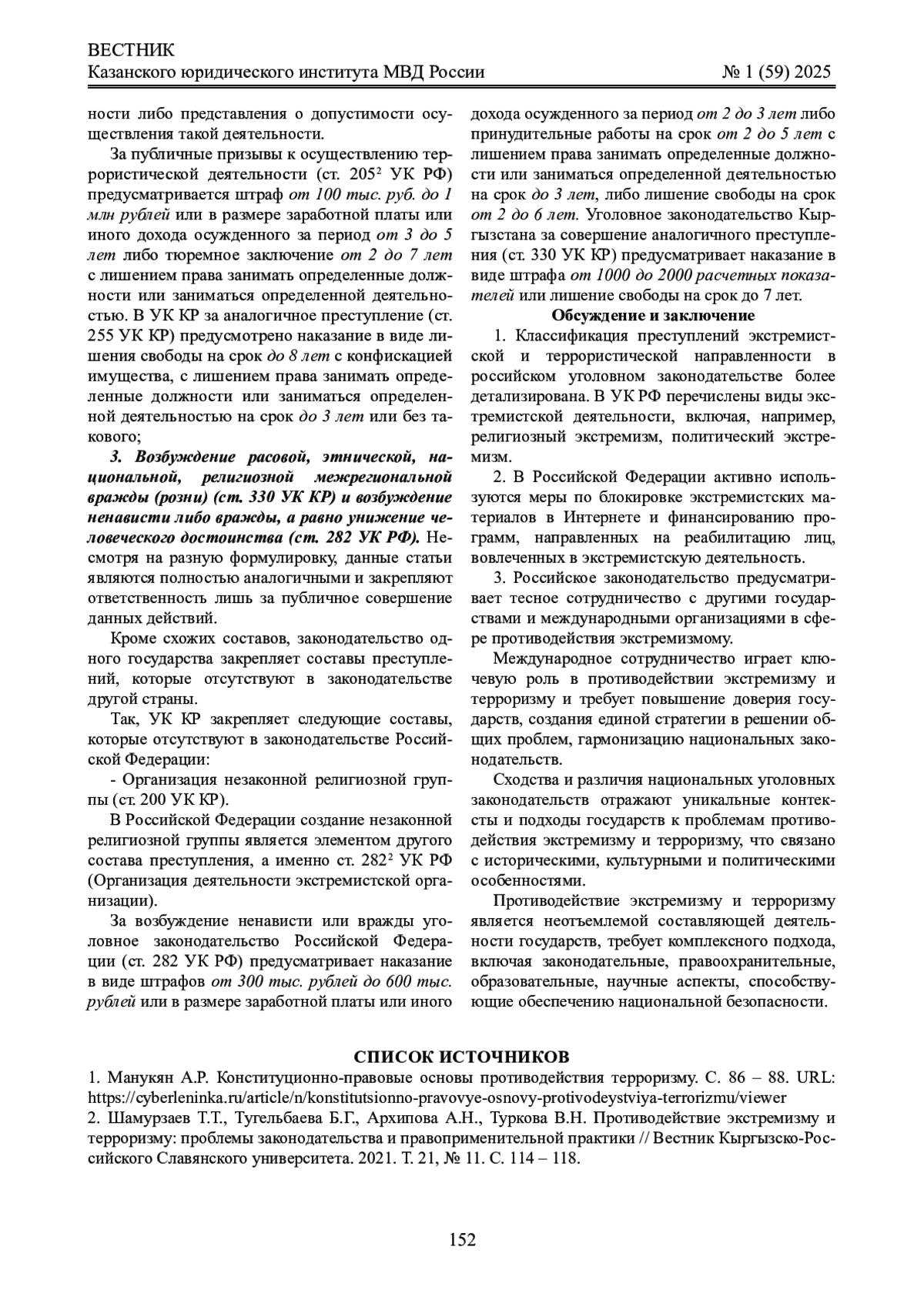 2. Шамурзаев Т.Т., Тугельбаева Б.Г., Архипова А.Н., Туркова В.Н. Противодействие экстремизму и терроризму: проблемы законодательства и правоприменительной практики // Вестник Кыргызско-Российского Славянского университета. 2021. Т. 21, № 11. С. 114 - 118. EDN: TDSSGA