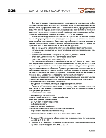 5. Соловьев Д. П. Киберугрозы и уголовная ответственность // Вестник Московского университета. - Серия 11: Право. - 2021. - № 6. - С. 72-78.