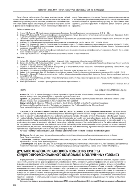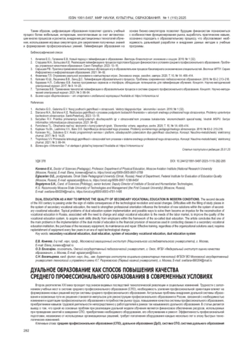9. Гордиенко О.А. Дуальное образование как одна из мировых практик обучения. Теория и практика общественного развития. 2020; № 5 (147): 31-35. EDN: LDWYXB