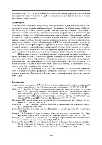 Ключевые фразы: младшие школьники, психофизические особенности, ОБУЧЕНИЕ ИНОСТРАННОМУ ЯЗЫКУ, игровые упражнения, синдром дефицита внимания и гиперактивности, уровень языковой подготовки