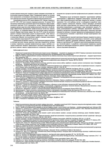 15. Алтунин В.К., Стручков А.М. Методология создания тренажерных и обучающих систем подготовки специалистов МФ. Тверь: НИИ ЦПС, 2004. 16. Шиков А.Н., Аванесова Т.П. Альтернативные подходы к проектированию и внедрению компьютерных технологий обучения. Образовательные технологии и общество. 2013; Т. 16, № 2: 433-446. Available at: http://ifets.ieee.org/russian/periodical/journal.htm. EDN: PZVVDJ