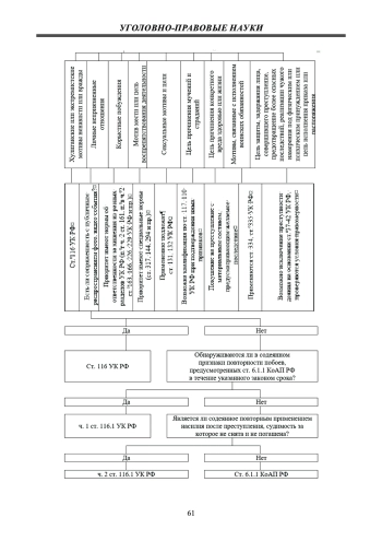 Введение: статья посвящена разработке наглядной схемы сложного процесса юридической оценки насильственного посягательства на телесную неприкосновенность человека для оптимизации деятельности сотрудников дежурных частей органов внутренних дел, реагирующих первыми на поступившую информацию и координирующих имеющиеся силы и средства. Изложение последовательности мыслительных операций показывает весь круг норм, способных подлежать применению, демонстрирует критерии их разграничения и наглядно отражает приоритет применения при наличии конкуренции.