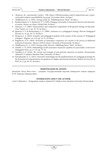 11. Потапова Л. С. Научно-педагогический анализ сущности понятия «Педагогические стратегии» // Magister. 2023. № 1(5). С. 16-21.