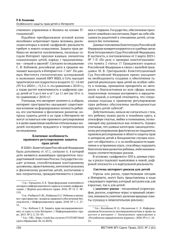 ХИСАМОВА Р. В. ОСОБЕННОСТИ ЗАЩИТЫ ПРАВ ДЕТЕЙ В ИНТЕРНЕТЕ // ЯЗЫК, КОММУНИКАЦИЯ И СОЦИАЛЬНАЯ СРЕДА. 2025. № 23