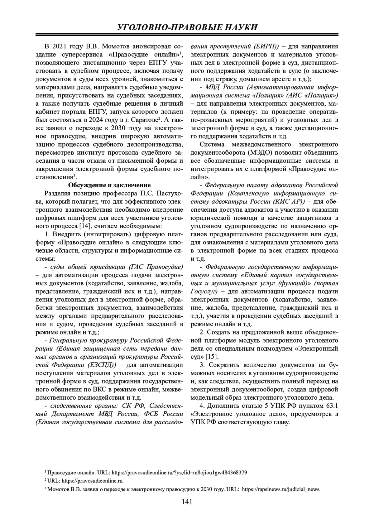 Ключевые фразы: электронное правосудие, электронная информация, электронная цифровая платформа уголовного судопроизводства, информационные технологии, электронное уголовное дело, гас правосудие, правосудие онлайн