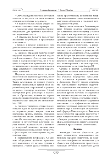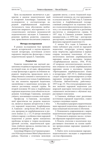 Статья: Педагогические идеи и воззрения Алигейдара Гашимова – основателя народной азербайджанской педагогики (2025)