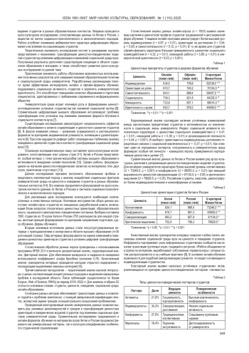 1. Алешковский И.А., Гаспаришвили А.Т., Крухмалева О.В. Особенности поведения и ценностей российского студенчества. Высшее образование в России. 2018; № 6: 81-94.