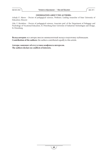 6. Блинов В. И., Куртеева Л. Н. Подготовка педагогов профессионального образования в вузе: традиции и перспективы // Вестник Воронежского государственного университета. Серия: Проблемы высшего образования. 2024. № 1. С. 23-28.