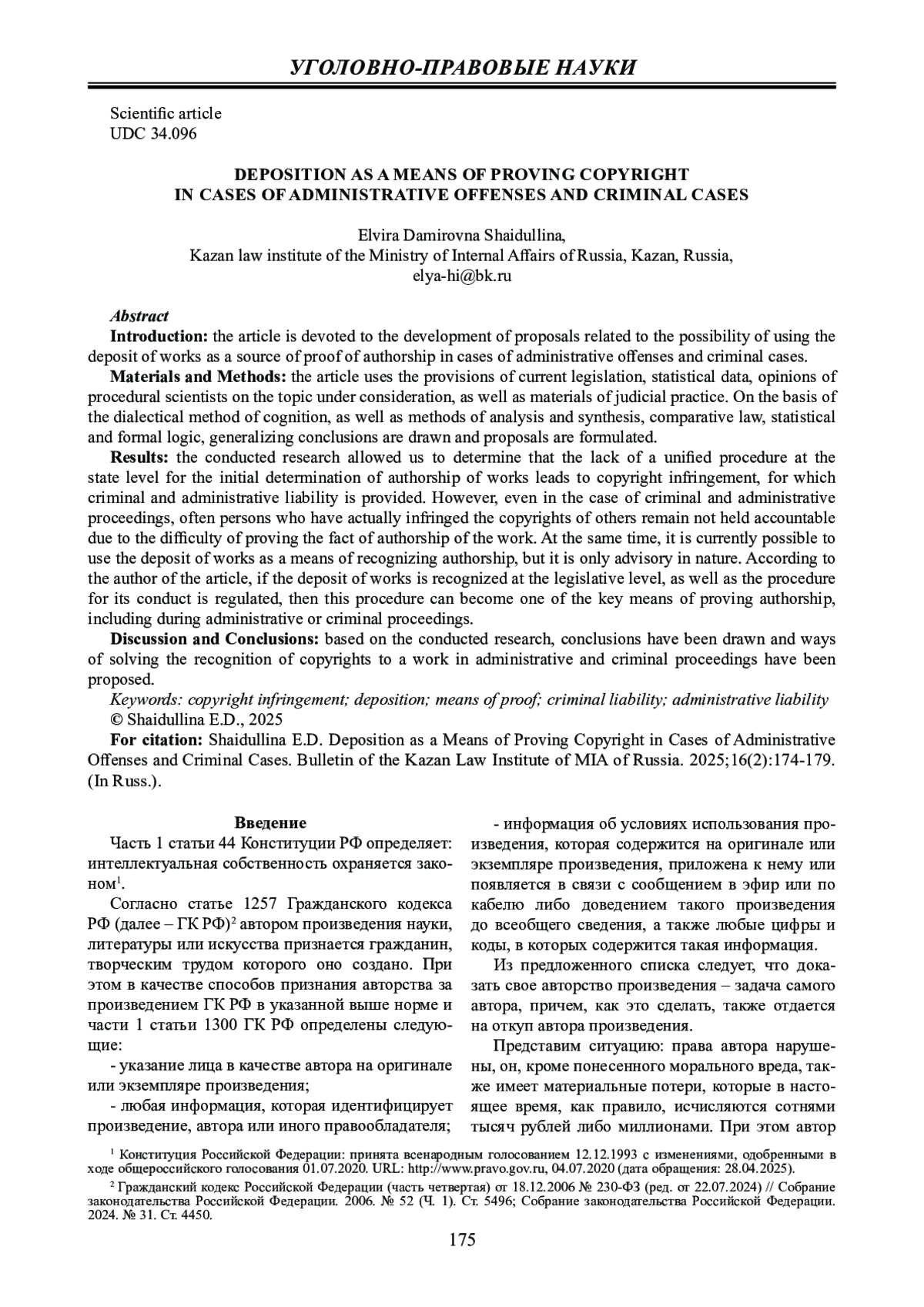 2. Близнец И.А., Ахметов Р.Р. Депонирование произведений и презумпция авторства // Юрист. 2024. № 10. С. 44 - 54. EDN: UZOQFS
