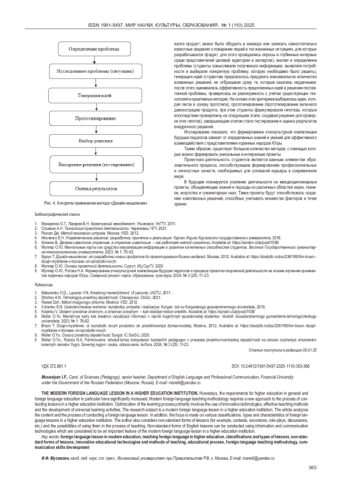 5. Левченко В.А. Специфика современного урока иностранного языка. Art Logos. 2021; № 3 (16): 100-104. EDN: KLEJIN