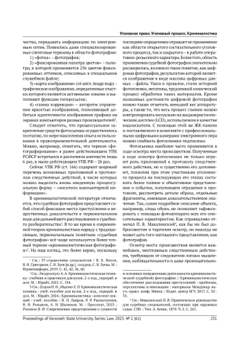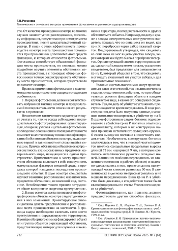 5. Романов В. И. Современные представления о сущности и основных направлениях деятельности криминалистической (судебной) фотографии // Криминалистическое обеспечение расследования преступлений: проблемы, перспективы и инновации: материалы Междунар. науч.-практ. конф. Минск: Издат. центр БГУ, 2017. С. 32-34. EDN: URVEJT