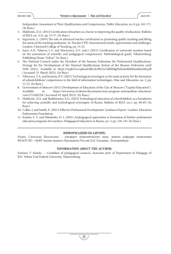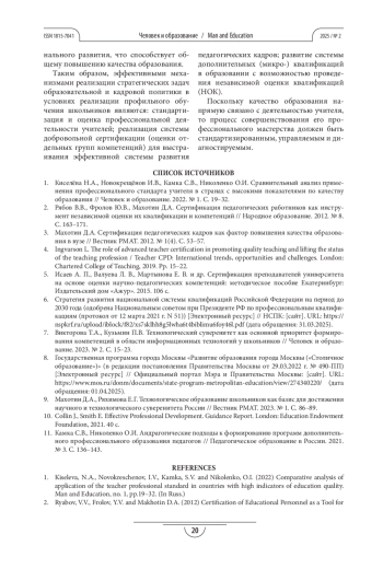 4. Ingvarson L. The role of advanced teacher certification in promoting quality teaching and lifting the status of the teaching profession / Teacher CPD: International trends, opportunities and challenges. London: Chartered College of Teaching, 2019. Pp. 15-22.