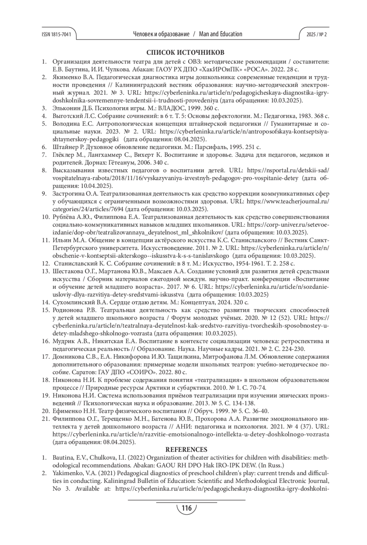 16. Мудрик А.В., Никитская Е.А. Воспитание в контексте социализации человека: ретроспектива и педагогическая реальность // Образование. Наука. Научные кадры. 2021. № 2. С. 224-230.