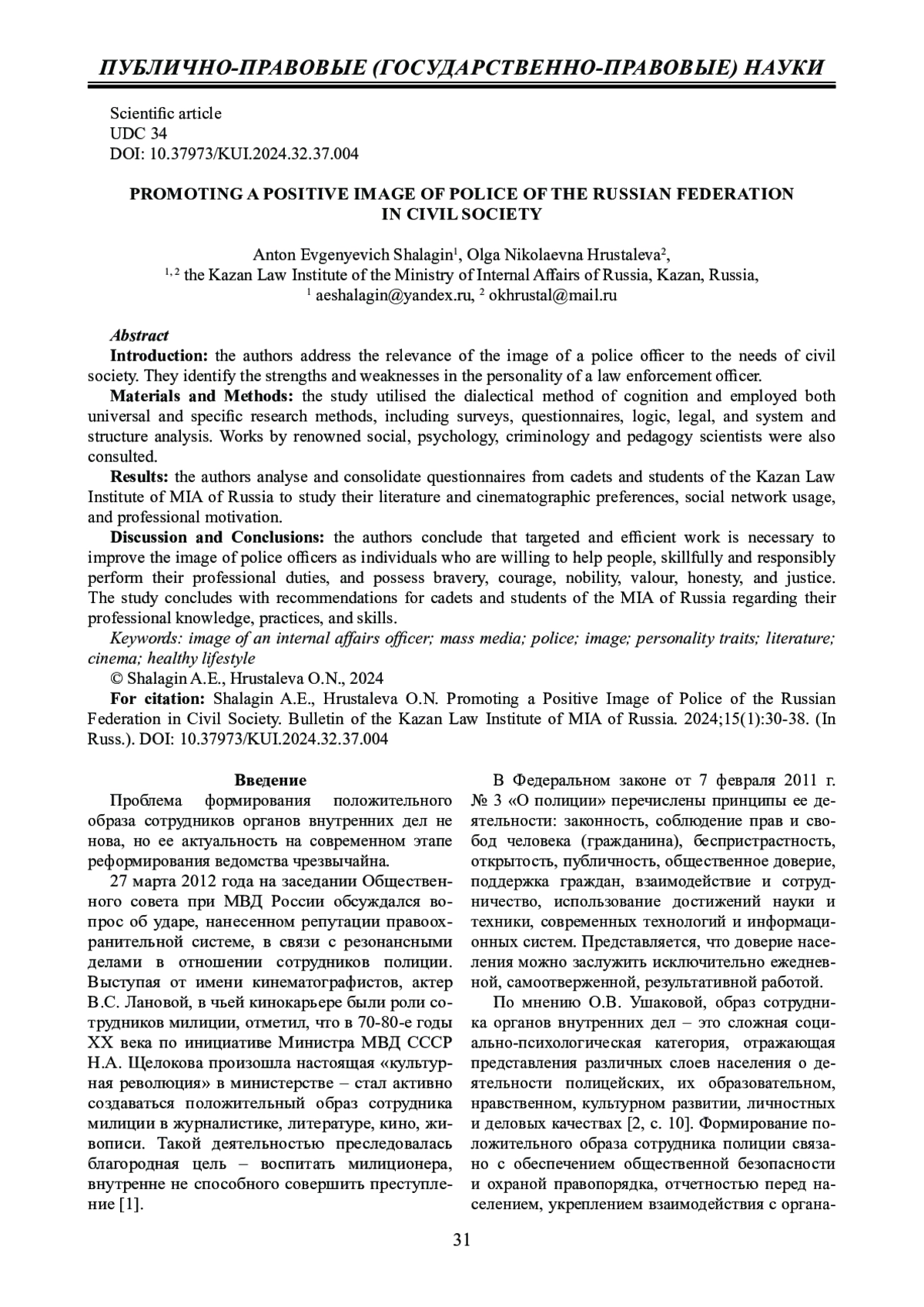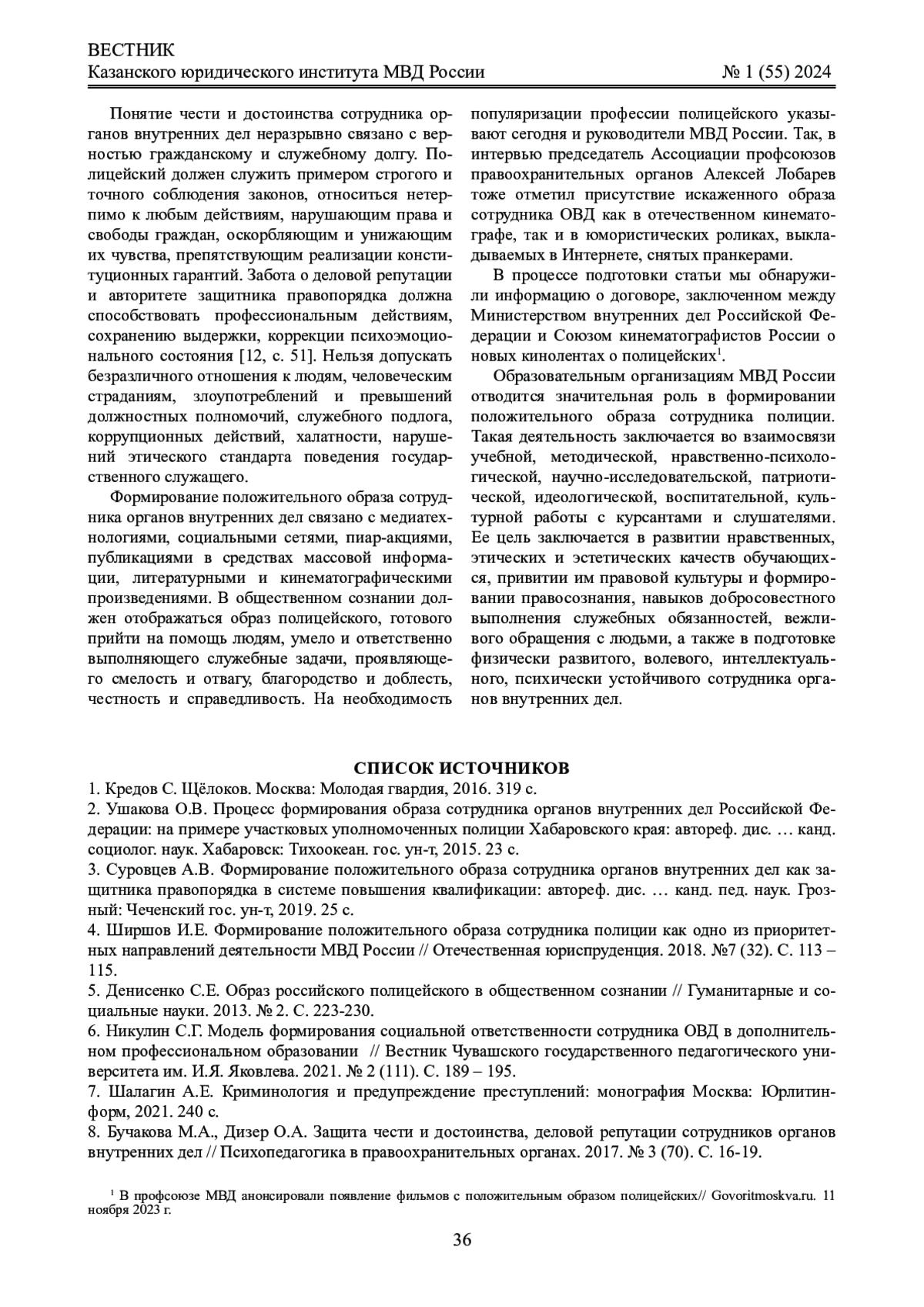 9. Браженская Н.Е., Чернобродов Е.Р. Социально-психологические особенности имиджа современного полицейского в России // Мир науки. Педагогика и психология. 2020. Т. 8. № 4. С. 46. EDN: OZMAOP