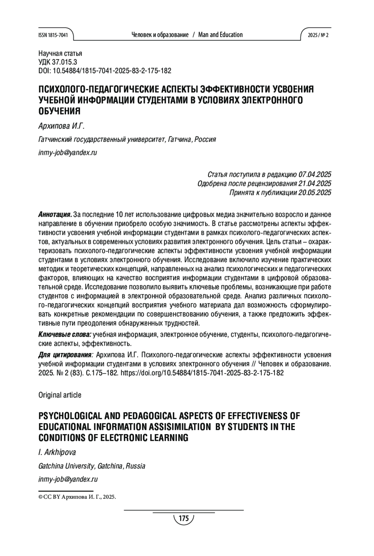 - 10.54884/1815-7041-2025-83-2-175-182