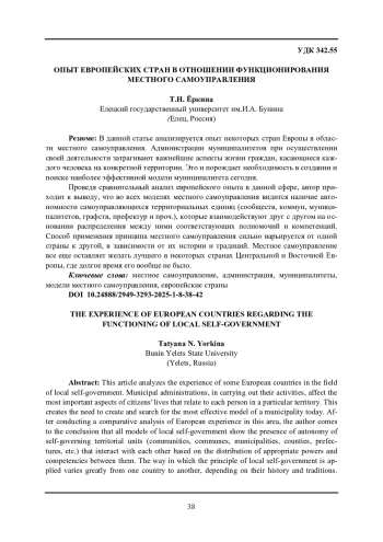 В данной статье анализируется опыт некоторых стран Европы в области местного самоуправления. Администрации муниципалитетов при осуществлении своей деятельности затрагивают важнейшие аспекты жизни граждан, касающиеся каждого человека на конкретной территории. Это и порождает необходимость в создании и поиске наиболее эффективной модели муниципалитета сегодня. Проведя сравнительный анализ европейского опыта в данной сфере, автор приходит к выводу, что во всех моделях местного самоуправления видится наличие автономности самоуправляющихся территориальных единиц (сообществ, коммун, муниципалитетов, графств, префектур и проч.), которые взаимодействуют друг с другом на основании распределения между ними соответствующих полномочий и компетенций. Способ применения принципа местного самоуправления сильно варьируется от одной страны к другой, в зависимости от их истории и традиций. Местное самоуправление все еще оставляет желать лучшего в некоторых странах Центральной и Восточной Европы, где долгое время его вообще не было.