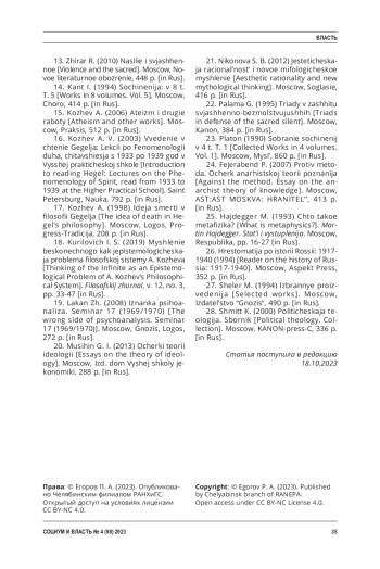 Выводы. Философия А. Кожева рассмотрена не как утопический политический проект, а как проблематизация современной культурной и политической сферы. Под последним понимается указание на несостоятельность онтологических дискурсов Истины, обнаружение в самой сути дискурсивных практик пустого, формального, а от того интересующего в первую очередь эстетику, принципа. Современная эпоха Конца истории и конца эпохи убедительной речи даёт представление о главном политическом парадоксе (как минимум для философии А. Кожева, и как максимум для современной политической среды). Эпоха разочарования в дискурсе должна стать эпохой отказа от борьбы за дискурсы, но становится эпохой максимизации насилия, так как именно в ситуации разочарования дискурсы остаётся поддерживать лишь силой. От неубедительной речи мы переходим к убедительному насилию, однако понять истоки и специфику такого перехода возможно лишь рассмотрев философию А. Кожева в свете такой дисциплины, как эстетика.