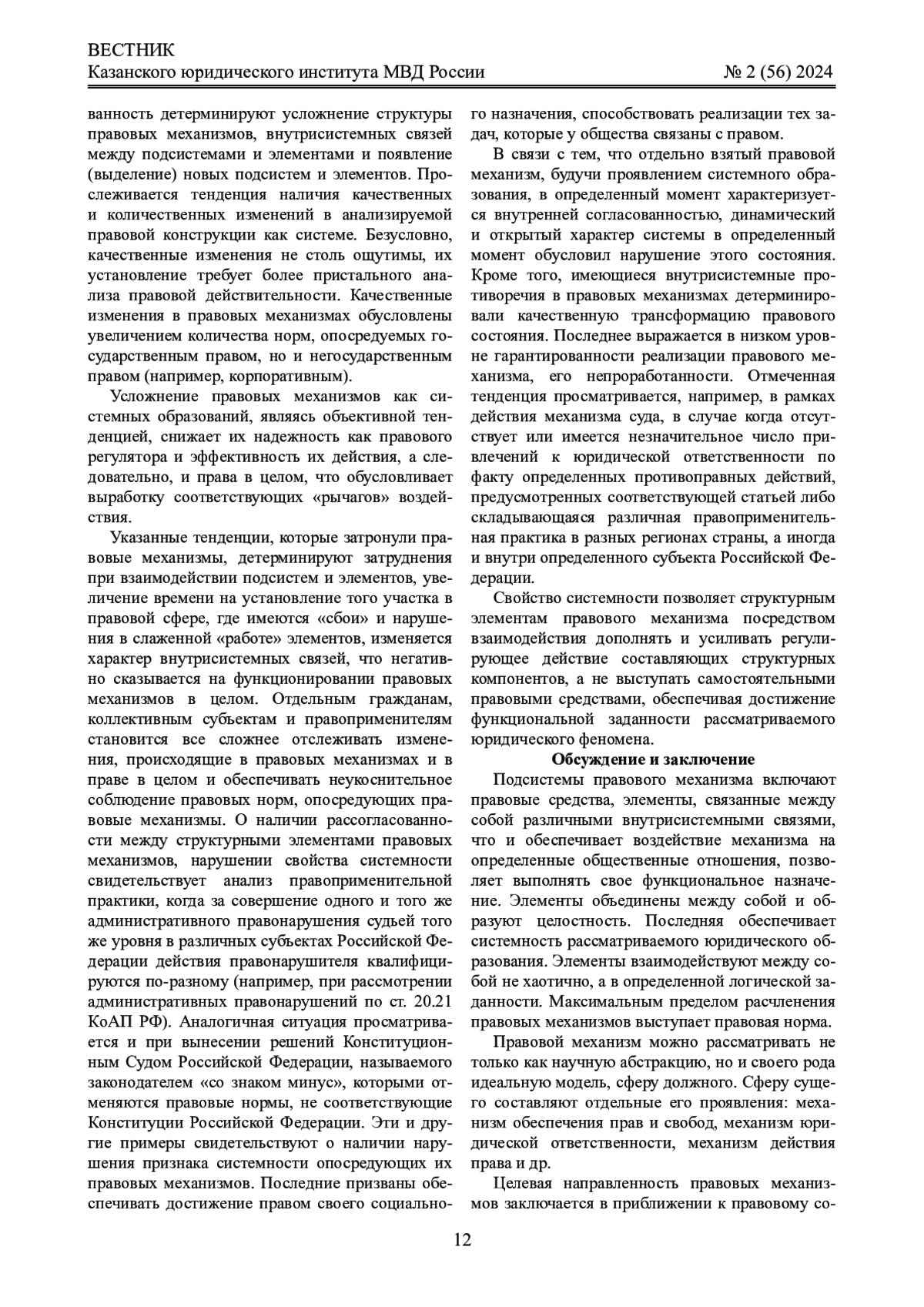 2. Шундиков К.В. Правовые механизмы: основы теории // Государство и право. 2006. № 12. С. 12 - 21. EDN: HYKELD