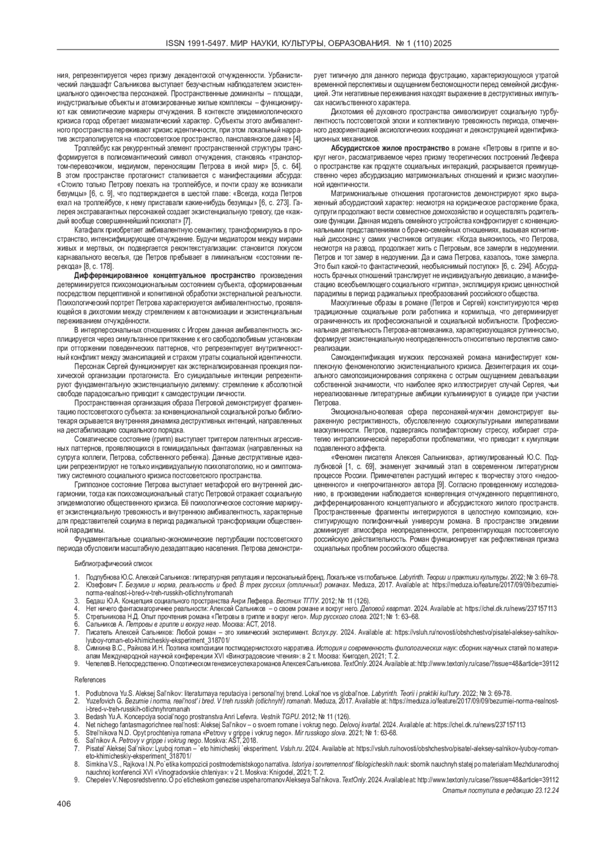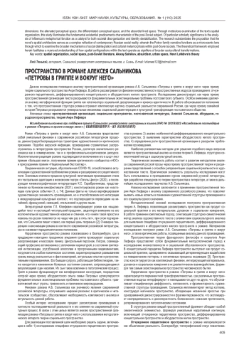 ЛЮЙ Т. ПРОСТРАНСТВО В РОМАНЕ АЛЕКСЕЯ САЛЬНИКОВА «ПЕТРОВЫ В ГРИППЕ И ВОКРУГ НЕГО» // МИР НАУКИ, КУЛЬТУРЫ, ОБРАЗОВАНИЯ. 2025. № 1 (110)