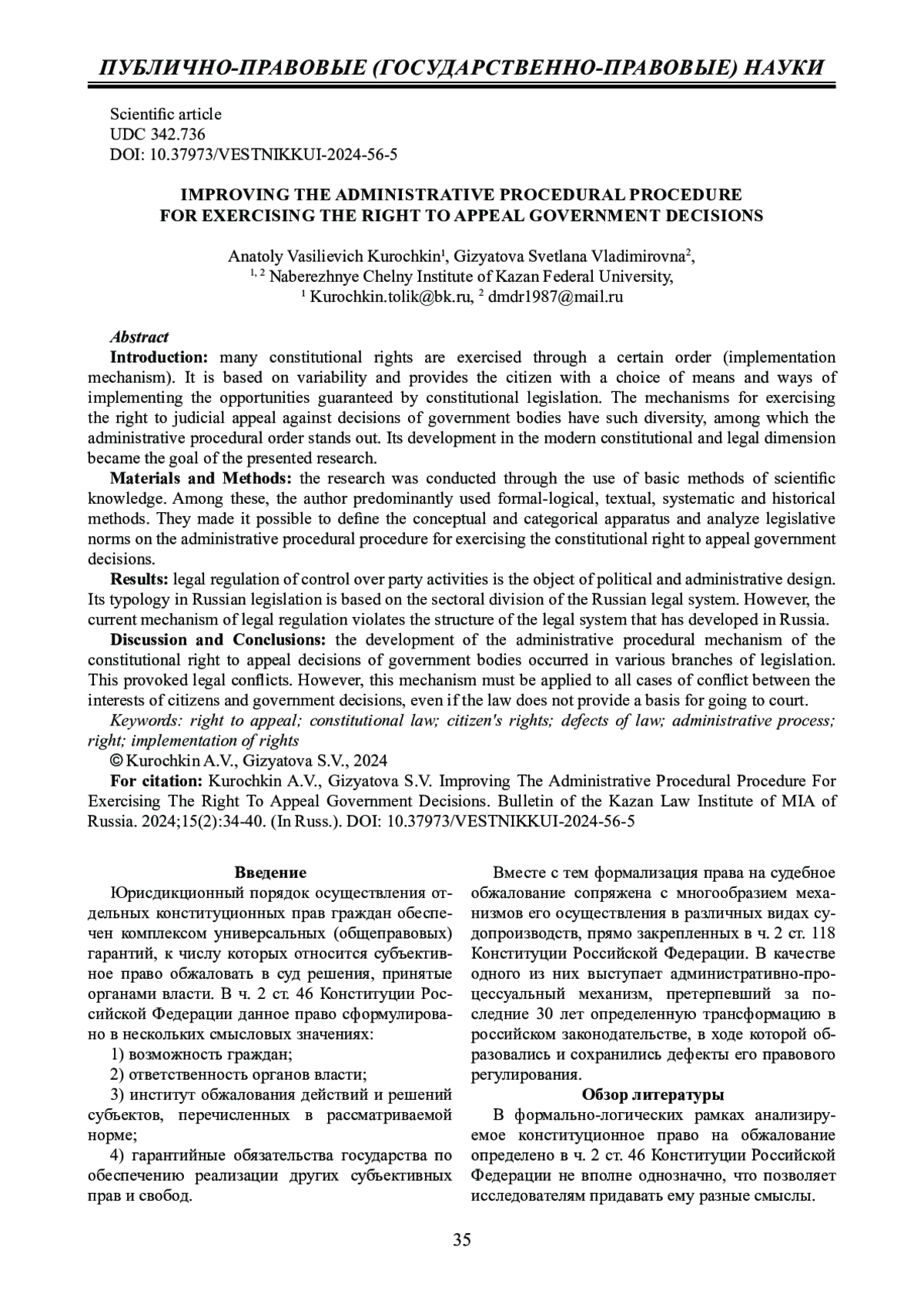 КУРОЧКИН А. В., ГИЗЯТОВА С. В. РАЗВИТИЕ АДМИНИСТРАТИВНО-ПРОЦЕССУАЛЬНОГО МЕХАНИЗМА ОСУЩЕСТВЛЕНИЯ ПРАВА НА ОБЖАЛОВАНИЕ РЕШЕНИЙ ОРГАНОВ ВЛАСТИ // ВЕСТНИК КАЗАНСКОГО ЮРИДИЧЕСКОГО ИНСТИТУТА МВД РОССИИ. 2024. Т. 15 № 2 (56)