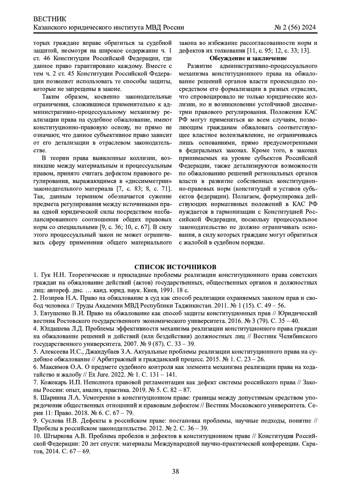 Ключевые фразы: право на обжалование, КОНСТИТУЦИОННОЕ ПРАВО, права гражданина, дефекты права, административный процесс, субъективное право, реализация права