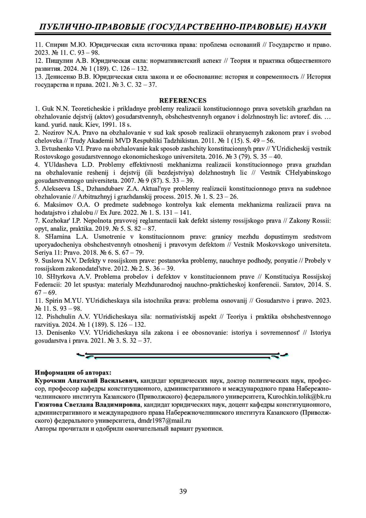 Автор (ы): КУРОЧКИН АНАТОЛИЙ ВАСИЛЬЕВИЧ, ГИЗЯТОВА СВЕТЛАНА ВЛАДИМИРОВНА