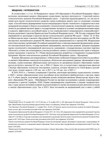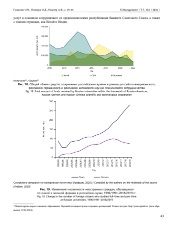 В статье рассматриваются данные статистики в области экспорта образования и научно-исследовательской деятельности российских университетов, подведомственных Министерству науки и высшего образования Российской Федерации (далее – Минобрнауки России), исследуется влияние санкций «недружественных стран» на результативность программ экспорта образования российских университетов и результативность научно-исследовательской деятельности подведомственных Министерству организаций. В 2022 г. была выдвинута гипотеза об отсутствии существенного влияния санкций «недружественных стран» на результативность научно-исследовательской деятельности и программ экспорта образования российских университетов (в краткосрочном периоде) при условии функционирования существующих механизмов государственного управления вузовской наукой. Новые данные, собранные в 2023 г. по результатам анализа отчетности подведомственных Минобрнауки России вузов, позволили осуществить проверку Гипотезы. В результате работы было показано, что при условии функционирования действующих механизмов государственного регулирования системы высшего образования научно-образовательная деятельность российских вузов в области международного сотрудничества не только мало уязвима для санкций со стороны «недружественных стран», но и имеет потенциал для развития. Авторами подчеркивается, что результативность образовательной деятельности российских вузов, подведомственных Минобрнауки России, в области международного сотрудничества выше, чем в научно-технической.