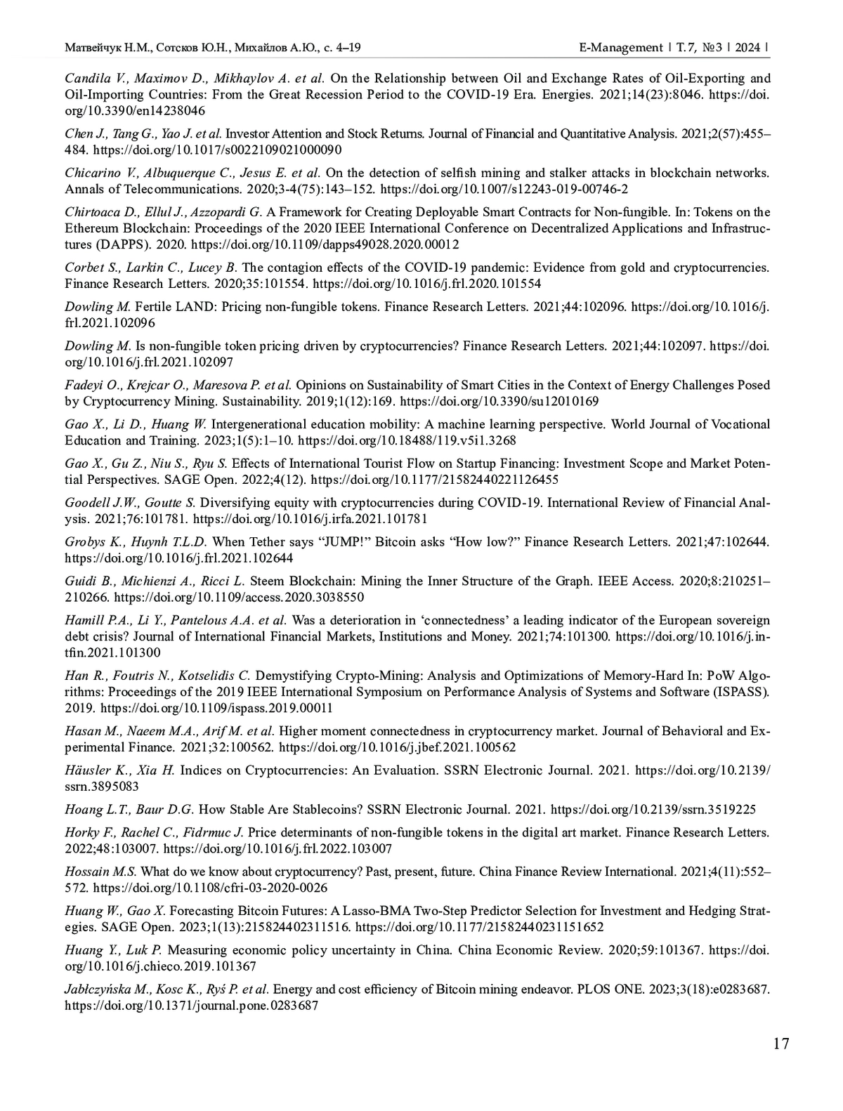 1. An J., Mikhaylov A., Chang T. Relationship between the popularity of a platform and the price of NFT assets. Finance Research Letters. 2024;3(61):105057. https://doi.org/10.1016/j.frl.2024.105057
