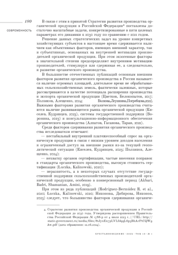 13. Ползиков Д. А., Алещенко В. В. (2024). О стратегии развития производства органической продукции в Российской Федерации до 2030 года // Проблемы прогнозирования. № 4 (205). С. 149-165.
