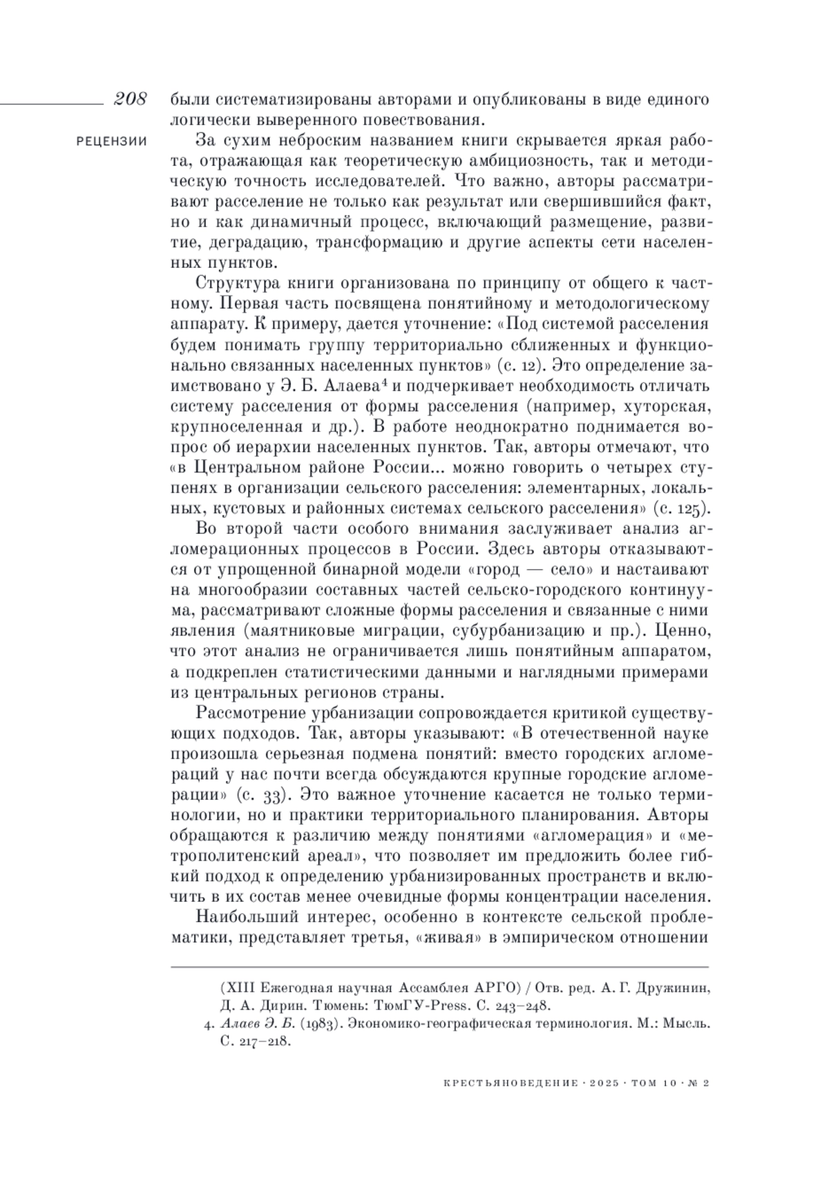 Рецензия на книгу: Смирнова А. А., Смирнов И. П., Ткаченко А. А. Расселение: основные понятия, подходы, результаты исследований. - Тверь: Тверской гос. университет, 2024. - 224 с. ISBN 978-5-7609-1940-3