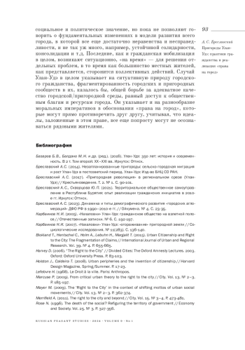 БРЕСЛАВСКИЙ А. С. ПРИГОРОДЫ УЛАН-УДЭ: ПРАКТИКИ ГРАЖДАНСТВА И РЕАЛИЗАЦИЯ "ПРАВА НА ГОРОД" // КРЕСТЬЯНОВЕДЕНИЕ. 2024. Т. 9 № 1