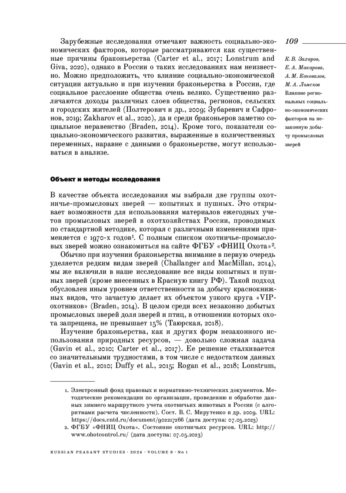 21. Braden K. (2014). Illegal recreational hunting in Russia: the role of social norms and elite violators // Eurasian Geography and Economics. Vol. 55. № 5. P. 457-490. EDN: UPKOFZ