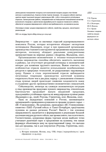 Звероводство — одно из значимых отраслей агропромышленного комплекса России, которая исторически обладает экспортным потенциалом (Балакирев, 2015а) и при правильной организации производства становится инструментом продвижения национальных интересов, поскольку обладает реальными конкурентными преимуществами на мировых рынках (Андреева, Малышева, 2020).