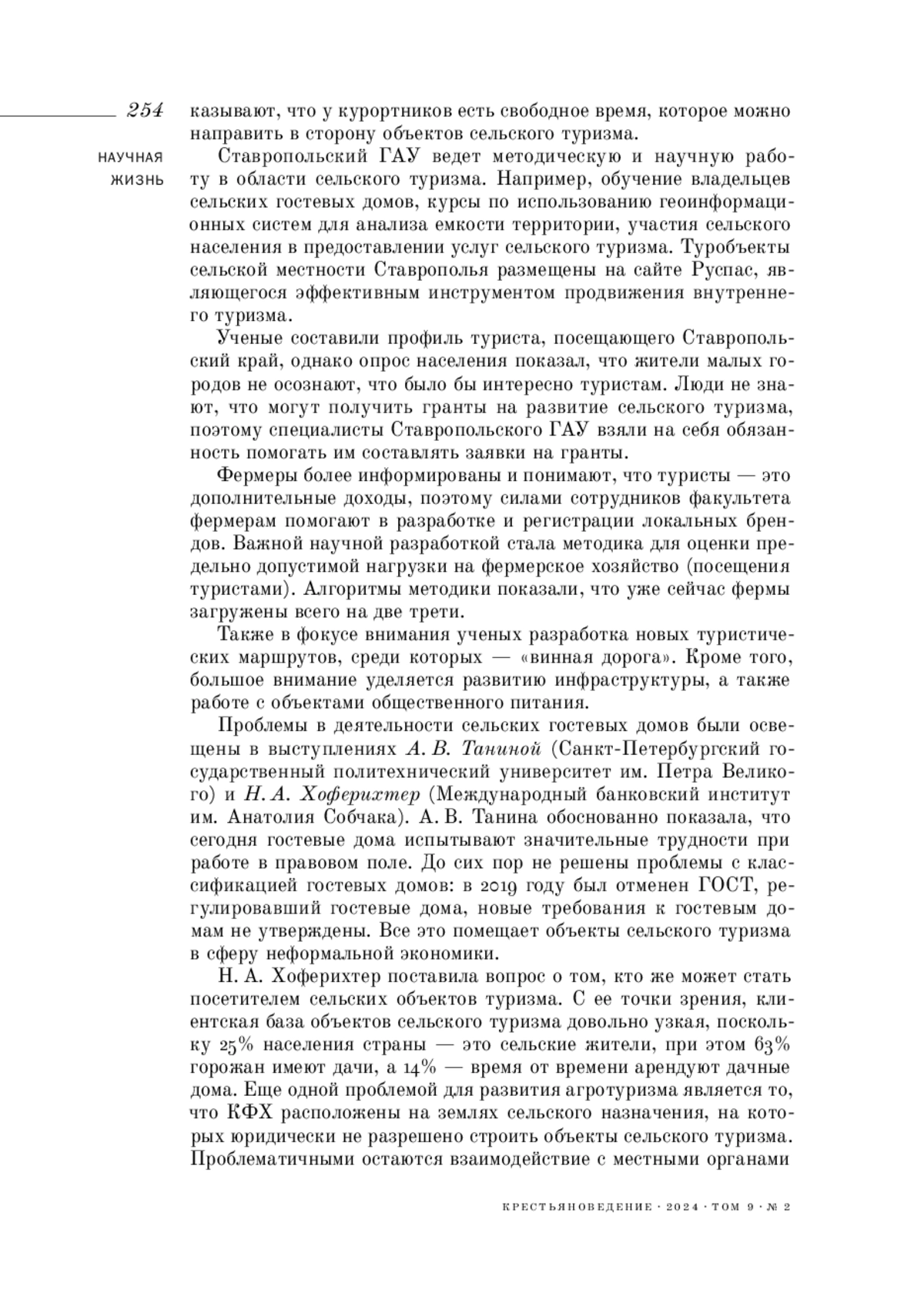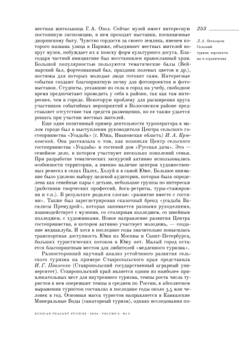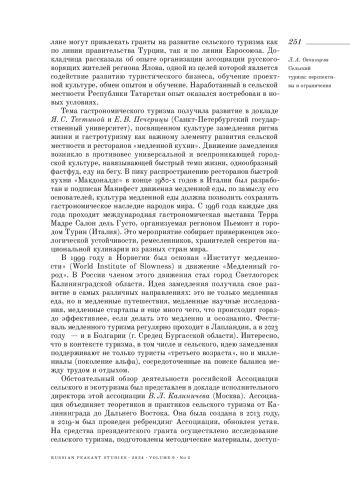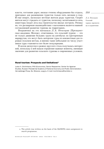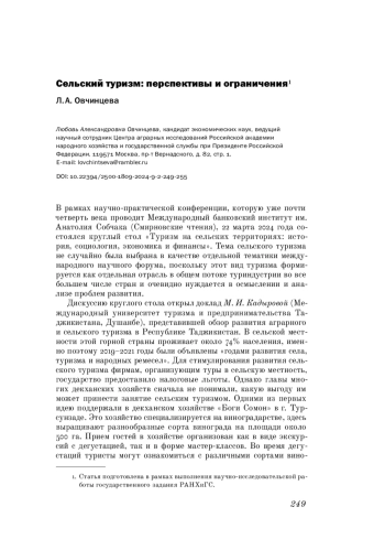 ОВЧИНЦЕВА Л. А. СЕЛЬСКИЙ ТУРИЗМ: ПЕРСПЕКТИВЫ И ОГРАНИЧЕНИЯ // КРЕСТЬЯНОВЕДЕНИЕ. 2024. Т. 9 № 2